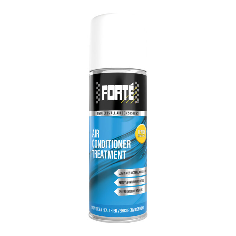Forté Air Conditioner Treatment on saatavana raikkaalla ”Lemon” -hajusteella. Tuotetta käytetään ilman erikoisvälineitä, siis kätevästi ja nopeasti. Helppokäyttöisyyden ansiosta useampikin ajoneuvo voidaan käsitellä samalla kertaa. Forté suosittelee ilmastointijärjestelmän puhdistusta vähintään kerran vuodessa.